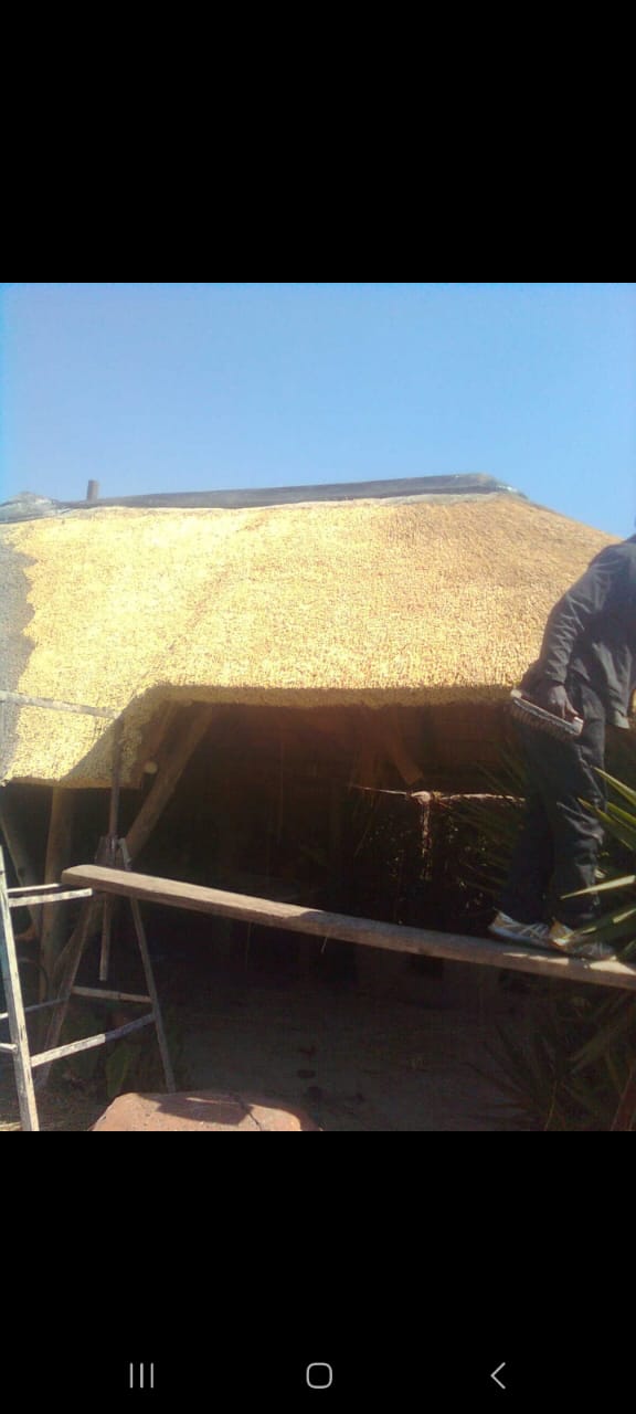 - Re-thatching tired or leaking roofs
